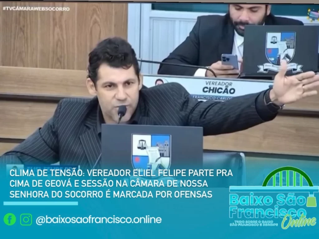 A sessão da Câmara Municipal de Nossa Senhora do Socorro, que deveria ser espaço para debates construtivos e propostas em benefício da população, foi marcada por um episódio de tensão e desentendimentos. O vereador Eliel Felipe protagonizou um momento polêmico ao disparar uma série de ofensas contra o colega Geová, do União Brasil.
