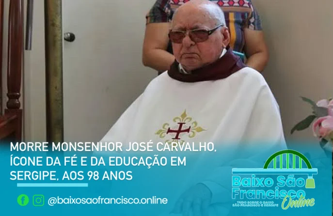 O monsenhor José Carvalho de Souza, uma das figuras mais respeitadas da Igreja Católica em Sergipe, faleceu nesta segunda-feira, 26 de maio de 2025, aos 98 anos, em Aracaju. A Arquidiocese de Aracaju confirmou o falecimento do sacerdote, que estava internado na Unidade de Terapia Intensiva (UTI) do Hospital Primavera devido a um quadro de infecção respiratória.