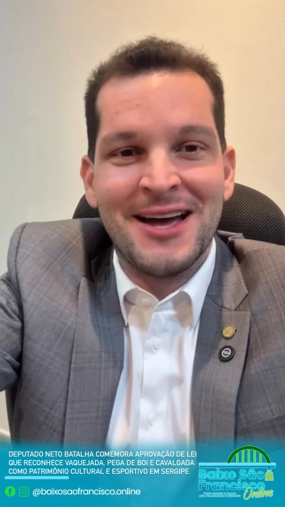 O deputado estadual Neto Batalha comemora, nesta quinta-feira, 05 de junho de 2025, a aprovação do Projeto de Lei nº 97/2025, de sua autoria, que reconhece oficialmente a Pega de Boi no Mato, a Cavalgada e a Vaquejada como práticas esportivas e culturais em todo o Estado de Sergipe. A proposta foi aprovada na Assembleia Legislativa e representa uma grande vitória para o povo sertanejo, para os vaqueiros e para todos que mantêm viva essa tradição que é símbolo da identidade cultural do interior sergipano.