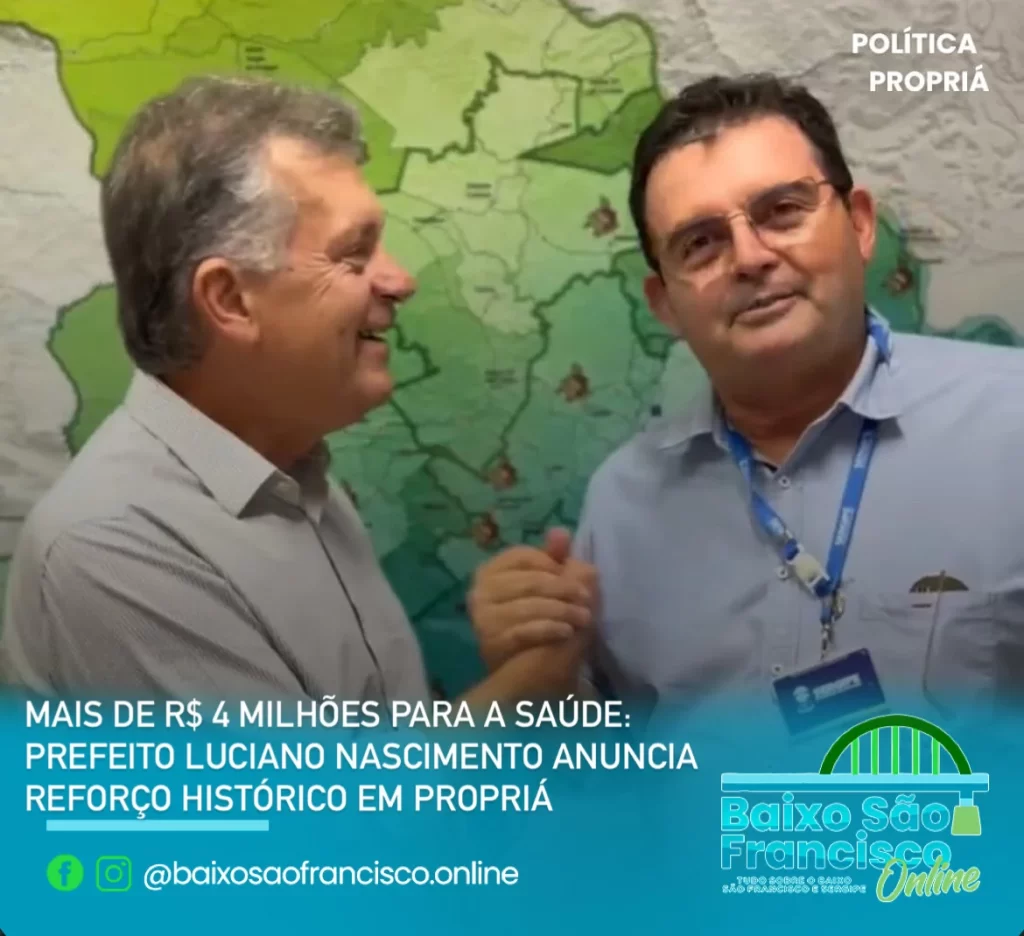 O prefeito Luciano Nascimento anunciou, nesta semana, uma importante conquista para o município de Propriá: a liberação de mais de R$ 4 milhões em recursos destinados exclusivamente à área da saúde. A boa notícia foi compartilhada com a população por meio das redes sociais oficiais do gestor.