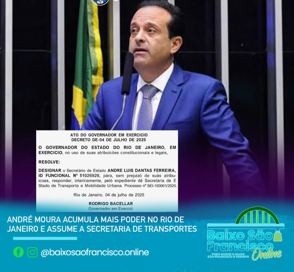 De acordo com apuração do jornalista Luiz Carlos Focca, o presidente estadual do União Brasil em Sergipe, André Moura, acaba de ser confirmado como novo titular da Secretaria de Transportes do Estado do Rio de Janeiro, ampliando ainda mais sua influência dentro da gestão fluminense.