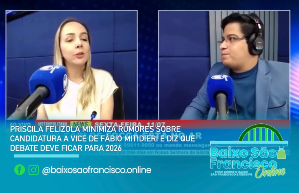 A superintendente do Sebrae em Sergipe, Priscila Felizola, afirmou em entrevista ao jornalista Luiz Carlos Focca que considera precipitada a discussão sobre sua possível candidatura à vice-governadoria na chapa de Fábio Mitidieri para as eleições de 2026. Segundo ela, os rumores surgem em razão dos resultados expressivos de sua atuação à frente da instituição, mas reforça que o momento é de foco no trabalho e não de definições políticas.