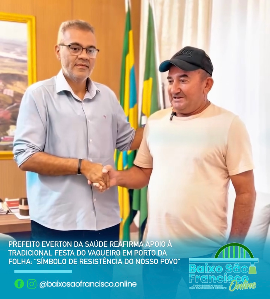 “Recebi com grande alegria o amigo Didi, Presidente da tradicional Festa do Vaqueiro de Porto da Folha! Firmamos juntos o compromisso de apoiar e fortalecer esse grande evento, que celebra não apenas nossa cultura sertaneja, mas também o Dia Nacional do Vaqueiro, símbolo de coragem, fé e resistência do nosso povo”, declarou o prefeito.