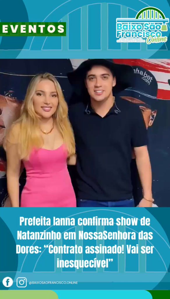 A prefeita de Nossa Senhora das Dores, Ianna, confirmou oficialmente nesta sexta-feira a contratação do cantor Natanzinho para um grande show na cidade. O evento está marcado para o dia 12 de agosto e promete ser um dos momentos mais marcantes do calendário festivo dorense.