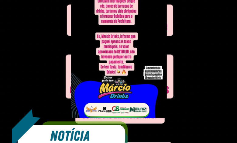 “Eu, Márcio Drinks, informo que paguei apenas as taxas municipais, não havendo qualquer outro pagamento”, afirmou o empreendedor, reforçando que sua atuação é independente e voltada para o público em geral durante eventos festivos na região.