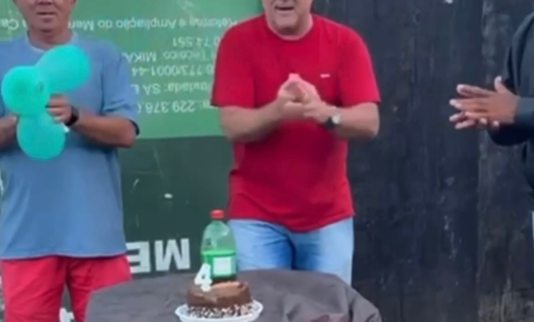 POPULAÇÃO DE AQUIDABÃ FAZ PROTESTO COM BOLO DE ANIVERSÁRIO EM FRENTE AO MERCADO MUNICIPAL PARALISADO HÁ QUATRO ANOS