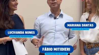 O governador Fábio Mitidieri, ao lado da secretária de Estado do Esporte, Mariana Dantas, e da secretária de Administração, Lucivanda…