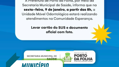 A Prefeitura de Porto da Folha, por meio da Secretaria Municipal de Saúde, informou que na sexta-feira, 9 de janeiro,…